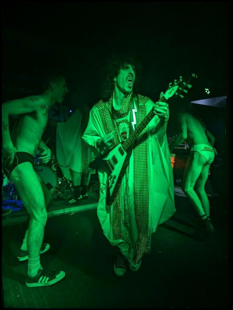 I’m guessing those costumes are quite hot, because as the gig wore on, they ended up shedding them and basically running around in their pants playing the dankest heavy metal, with guitarists on the bass players shoulders, the keyboard player going nuts, and the singer belting out lyrics in peoples faces. All of this was playing out in the middle of the crowd, and because it’s The Flapper, there are no barriers, and very little separation. The whole thing descended to all-out chaos in the most entertaining way. Remarkably, they did not drop a note while doing all of this, adding to their already incredible Aura. What we were witnessing was undoubtably something else entirely – something from the beyond.